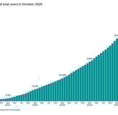 As stablecoins, como o USDT (Tether), entraram de forma massiva no sistema financeiro global. No início de 2025, o USDT já havia ultrapassado 500 milhões de usuários globalmente.